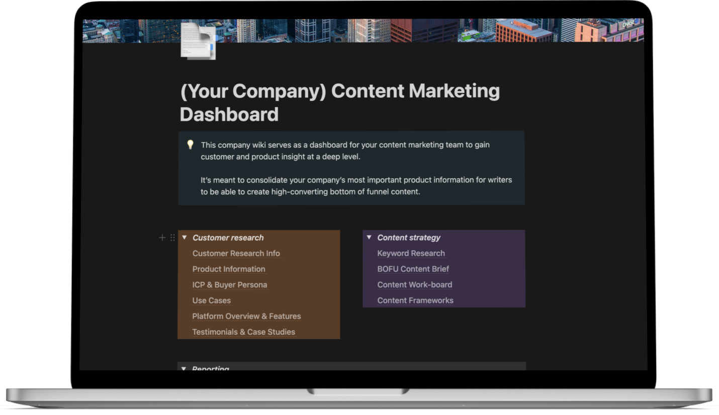 Your team gets a collaborative content marketing dashboard in Notion to execute and learn from. No more endless email threads. All of your deliverables and education are consolidated in one space that you own. Forever.