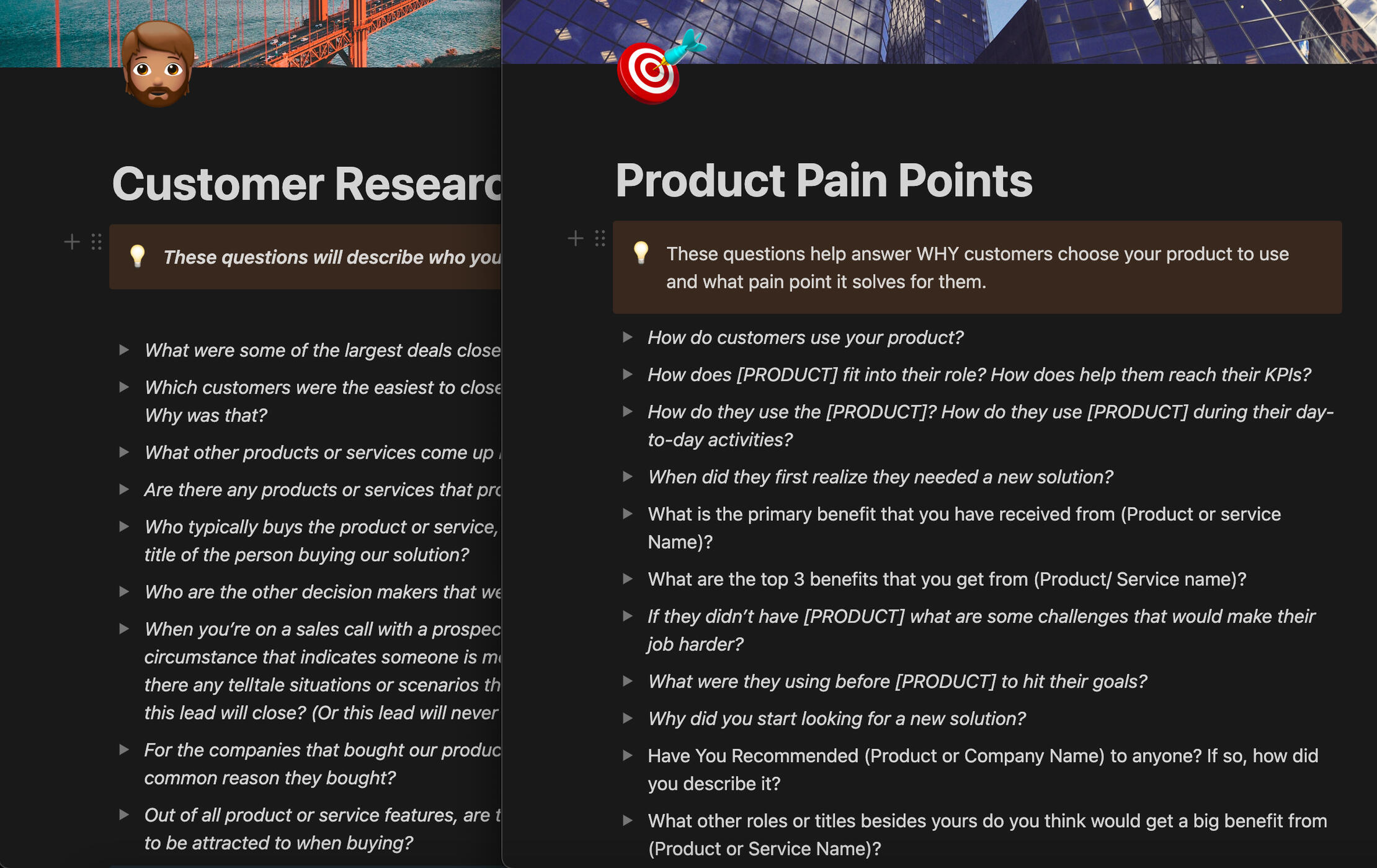- Helps your team achieve content marketing and sales alignment- Insight on who your ICP is and WHY they buy from you- Gain an understanding of who your competitors are and their weak points- Know the exact language your prospect uses when searching for a solution like yours